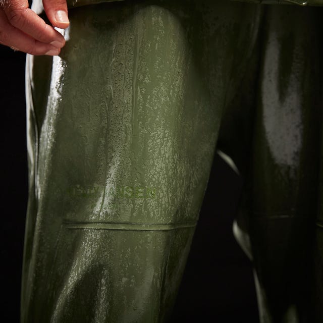 The Storm Bib brings a new level of outerwear to commercial fishing. Focused on extremely durable fabrics and waterproof protection out at sea, the Storm also brings in stretch fabric to make movements on board even easier when the weather gets bad. Features like the elastic adjustable suspenders and adjustable snap at the waist will keep you comfortable on deck while the zippered internal chest pocket will hold any personal items needed. Phthalate free fabrics ensures low environmental impact while at the same time keeping you dry no matter the weather.
